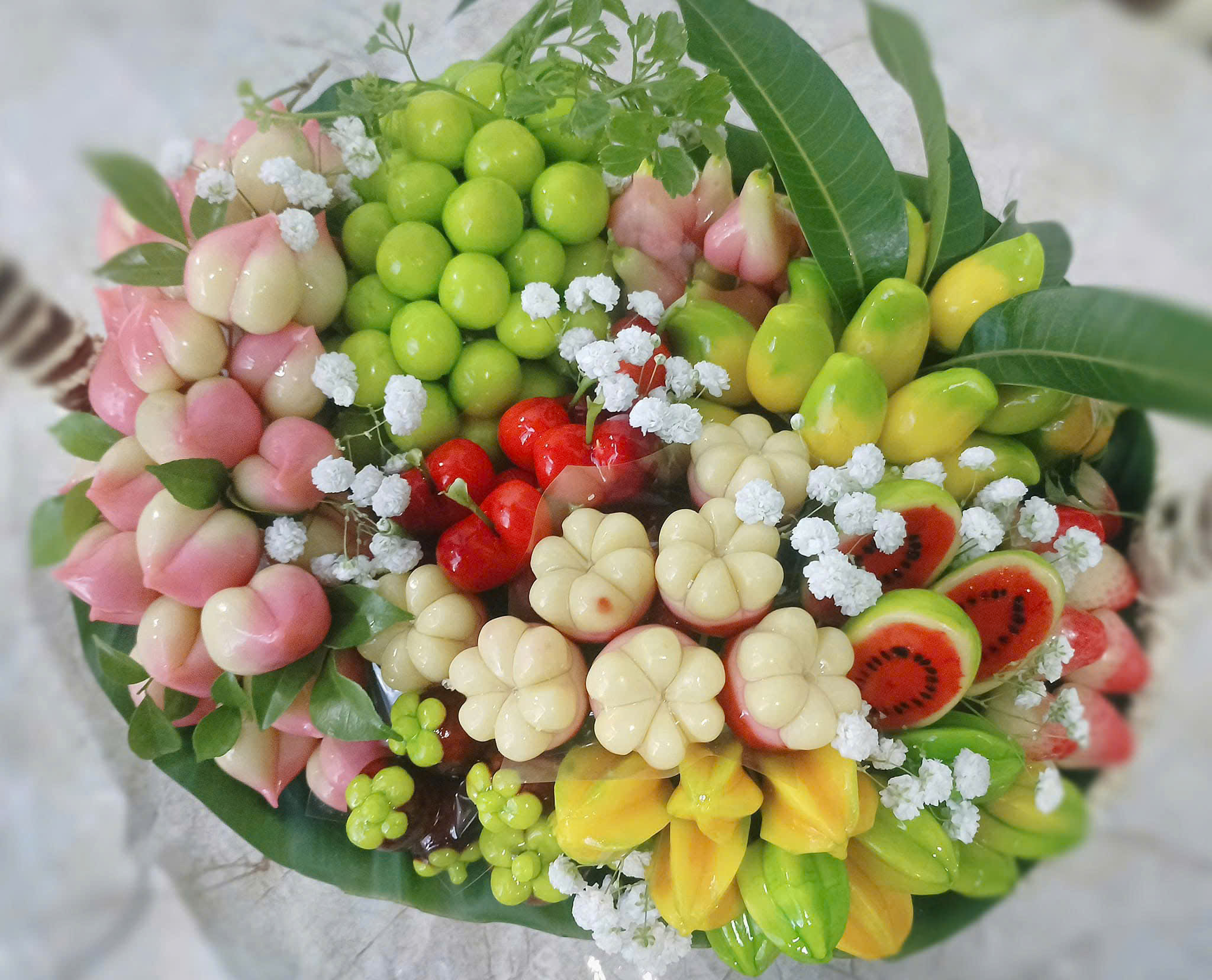 Bánh đậu xanh trái cây không chỉ đẹp mắt mà còn có hương vị thơm ngon, mềm mịn, ngọt thanh, thường được thưởng thức cùng trà nóng để tăng thêm phần thi vị. Đây là một món quà đặc sản của Huế, vừa mang giá trị nghệ thuật, vừa thể hiện sự tinh tế trong văn hóa ẩm thực Việt Nam.