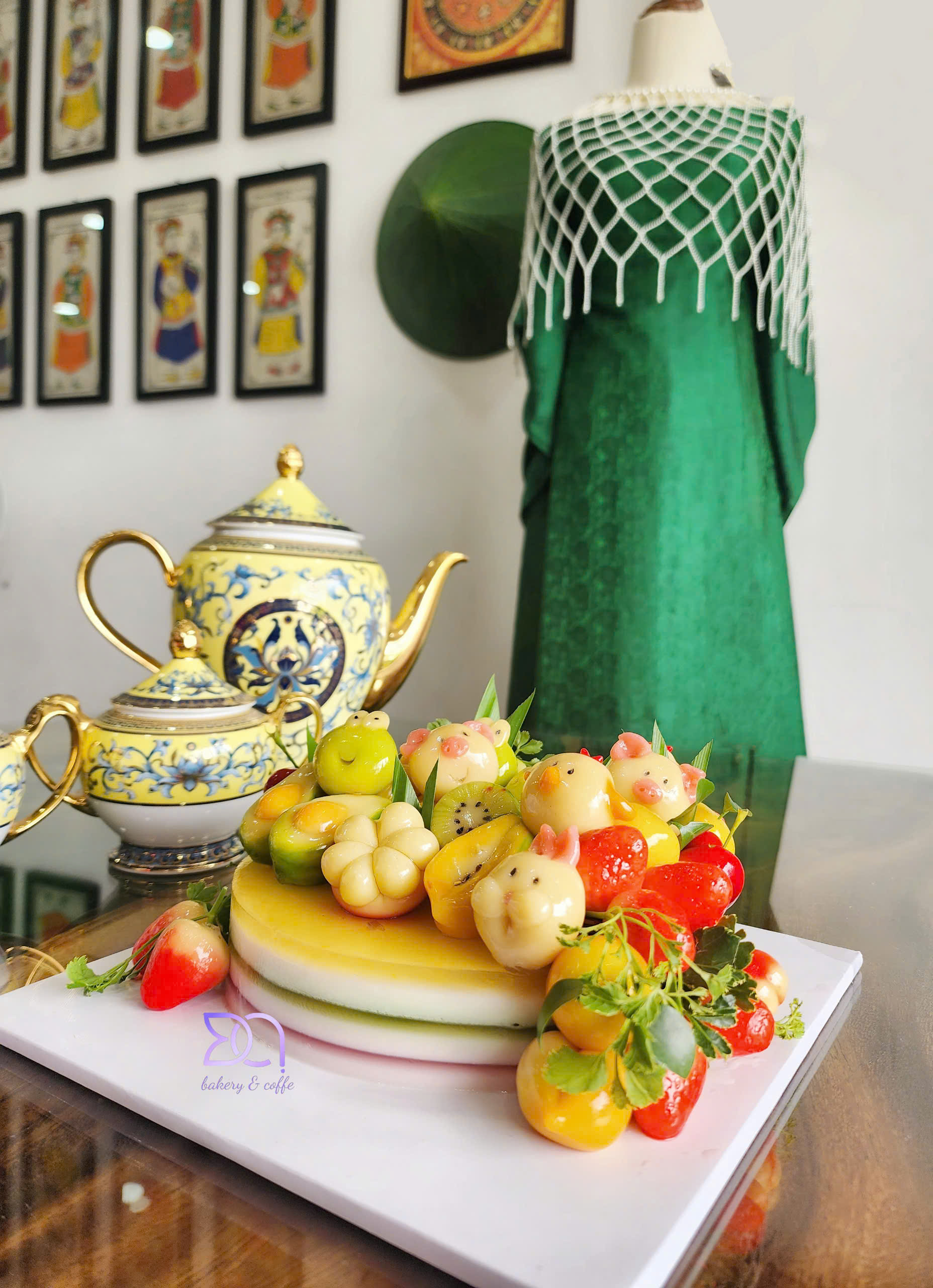 Là một món ăn tinh tế, mang đậm dấu ấn của ẩm thực cung đình. Những chiếc bánh nhỏ xinh được tạo hình giống hệt các loại trái cây như xoài, măng cụt, lựu, khế, đào, ớt… với màu sắc rực rỡ và vẻ ngoài bóng bẩy.