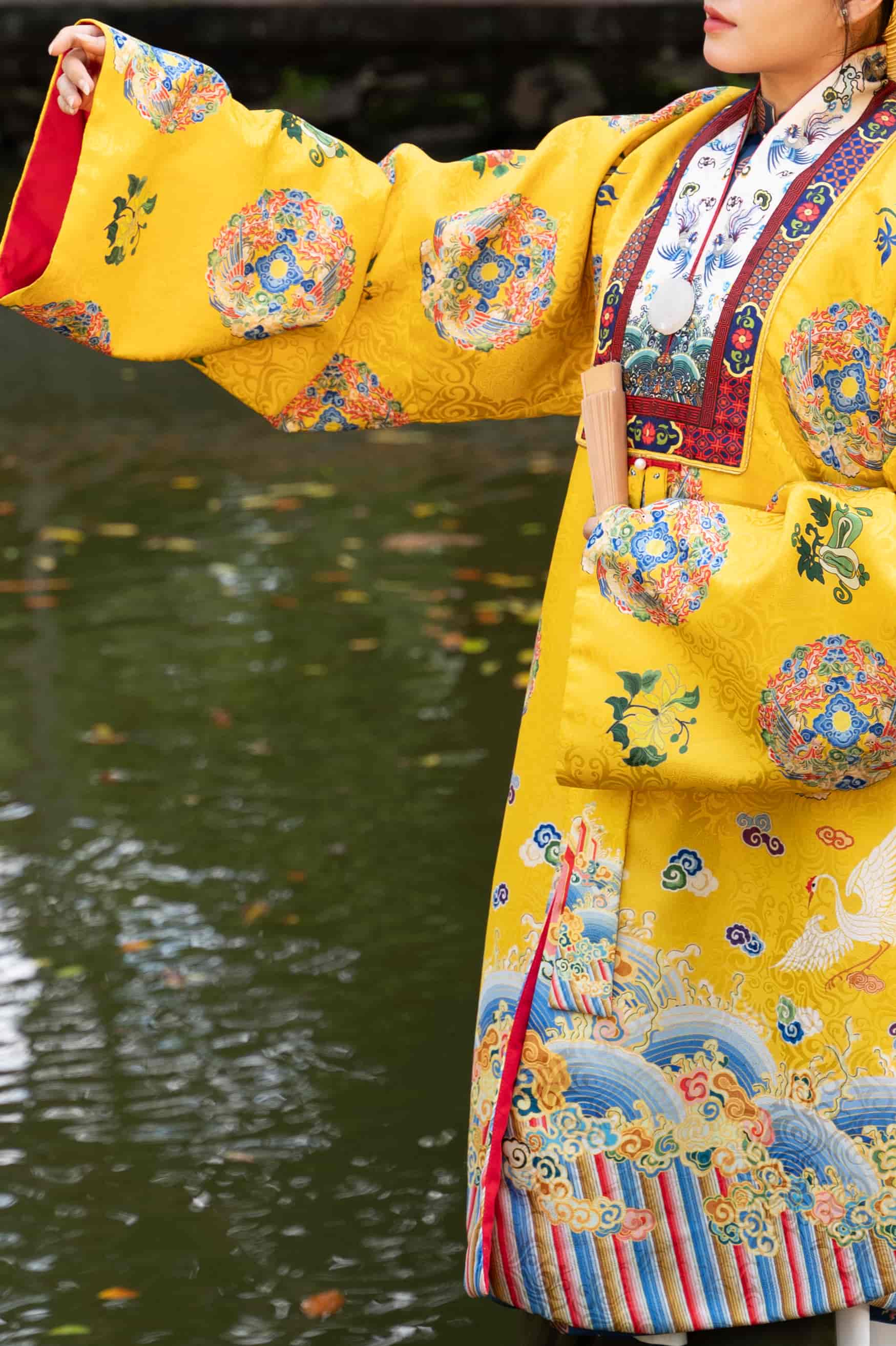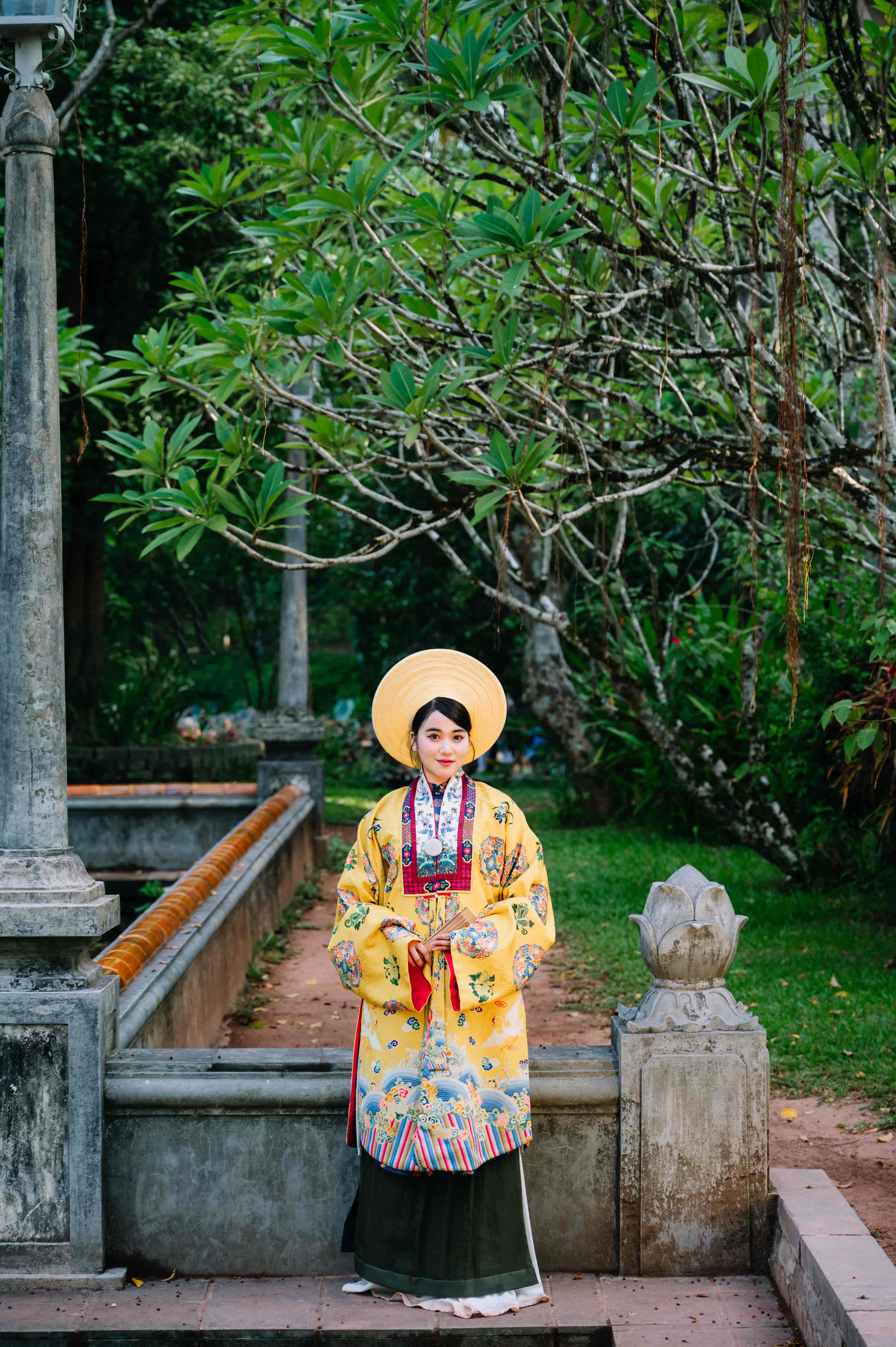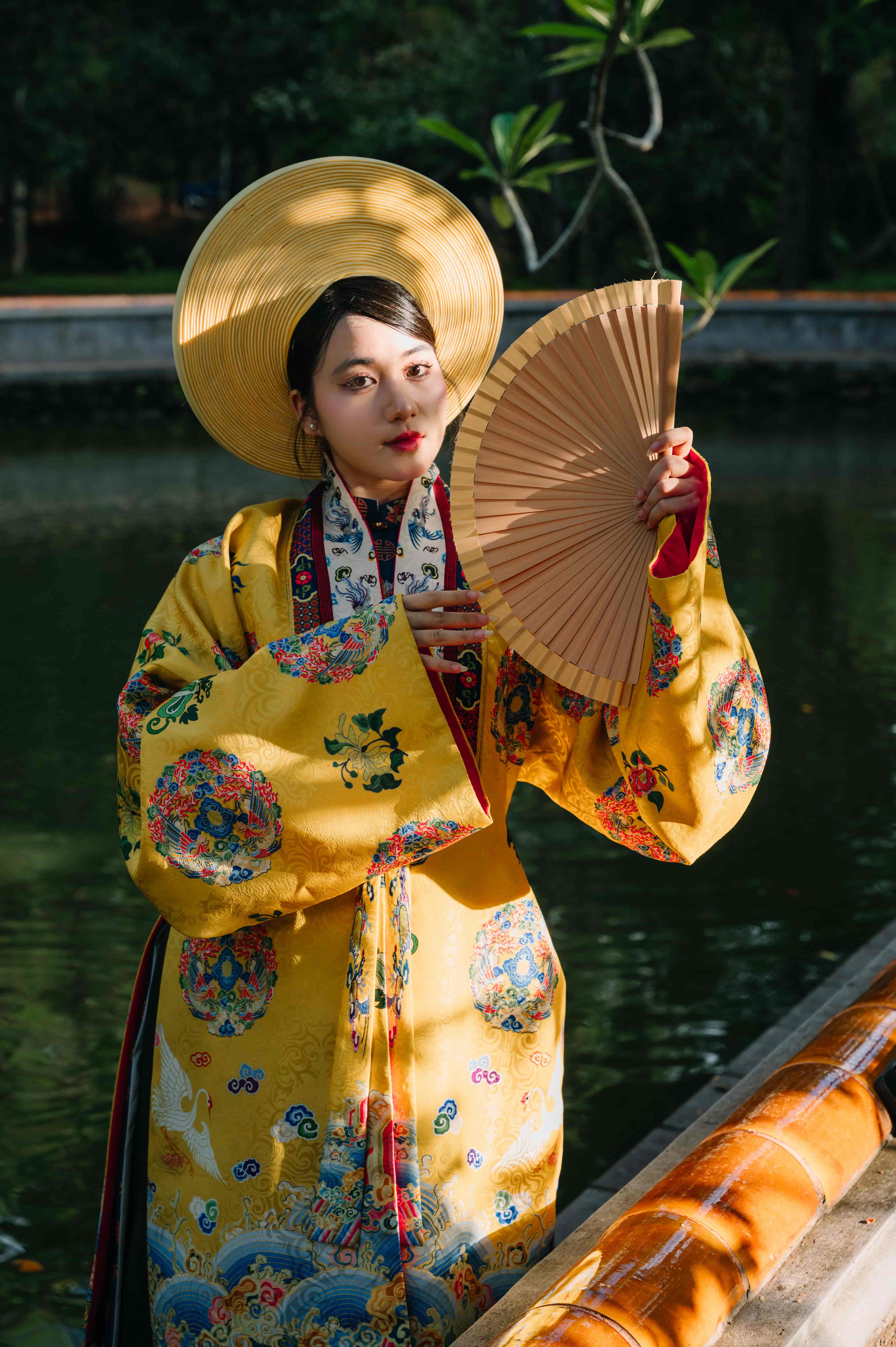 Áo Nhật Bình màu vàng là một trang phục truyền thống đặc biệt của Việt Nam, thường được mặc bởi các hoàng hậu, công chúa và các quý tộc trong triều đình. Màu vàng, biểu tượng của hoàng gia và quyền lực, làm nổi bật vẻ đẹp sang trọng và quý phái của trang phục này. Áo Nhật Bình có thiết kế đặc trưng với cổ áo cao, tay áo rộng và dài, cùng với các họa tiết thêu tay tinh xảo, thể hiện sự khéo léo và tài hoa của các nghệ nhân.