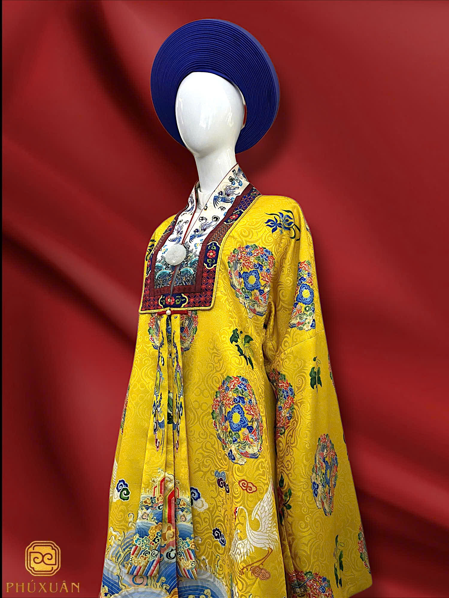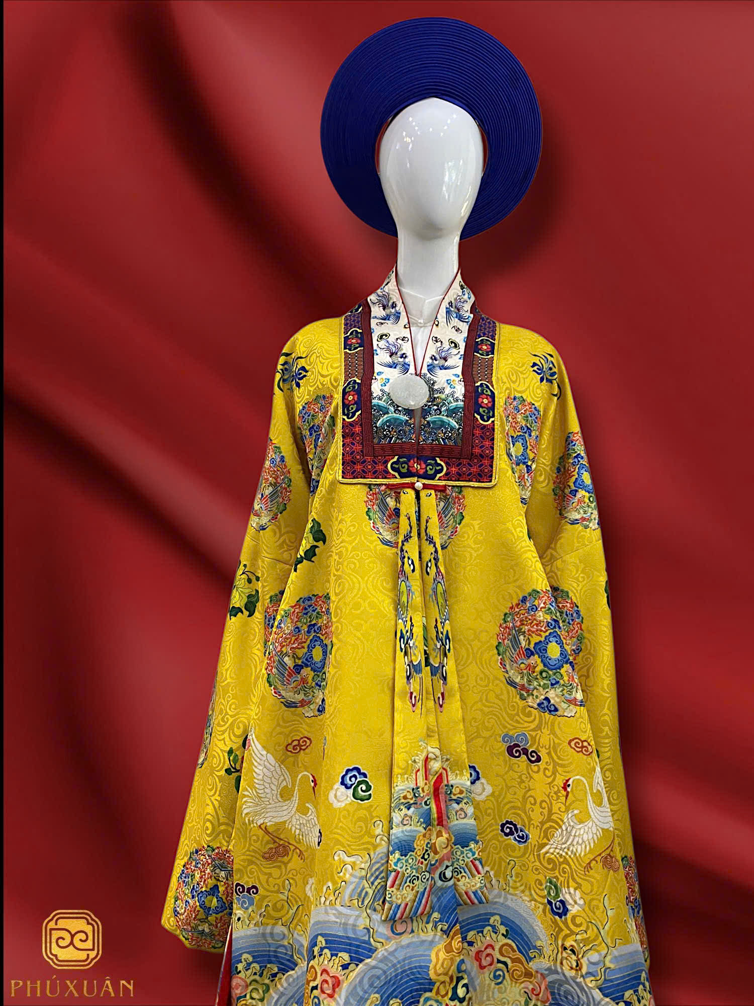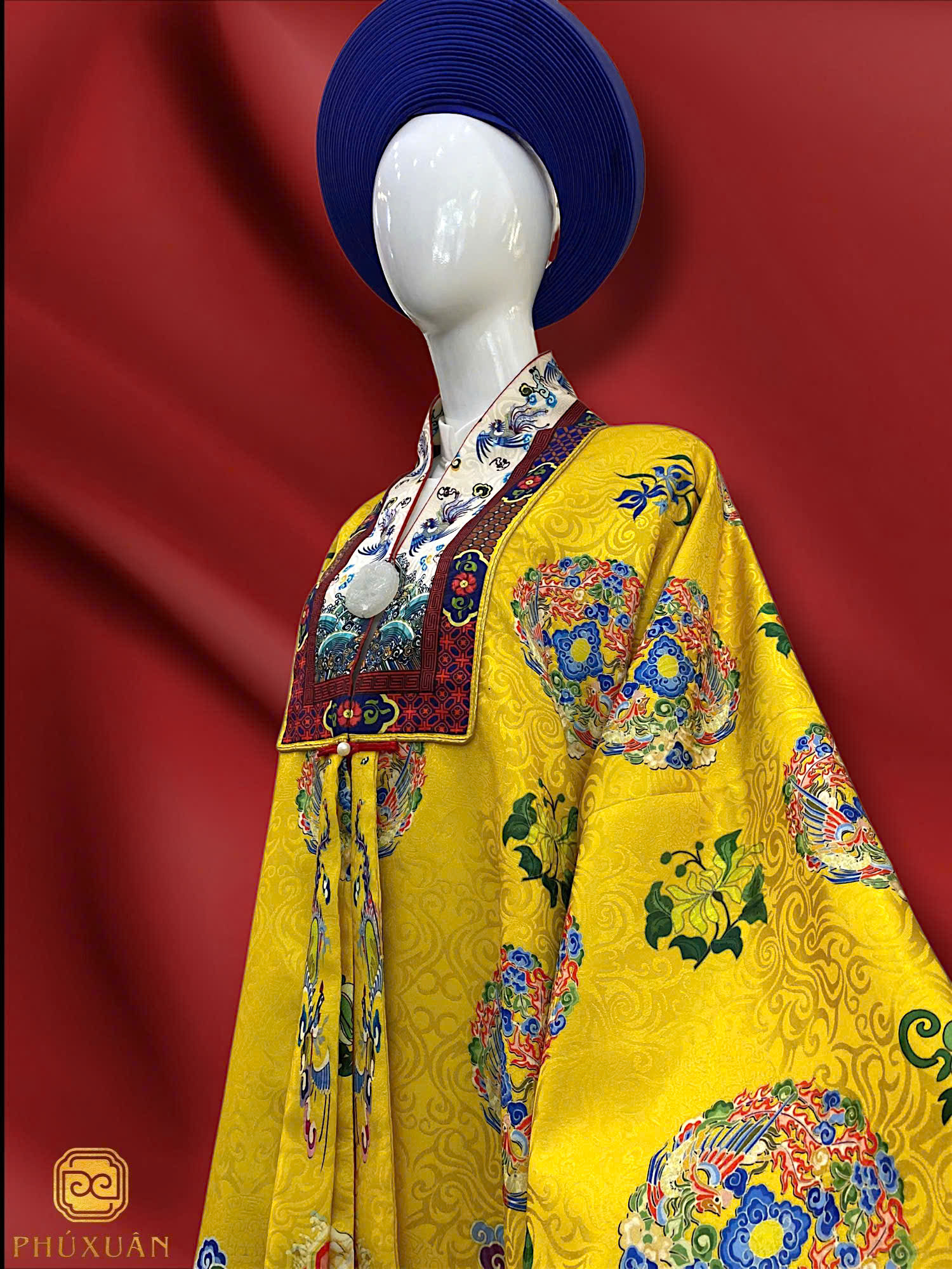 Áo Nhật Bình là một kiểu trang phục cung đình đặc trưng dành cho nữ giới thời Nguyễn, tượng trưng cho sự trang trọng, quý phái và quyền lực hoàng tộc. Với dáng áo rộng, tay liền, cổ tròn và vạt áo ngang, Nhật Bình thường được may từ chất liệu cao cấp như gấm, lụa, tơ tằm… kết hợp kỹ thuật thêu thủ công tinh xảo.