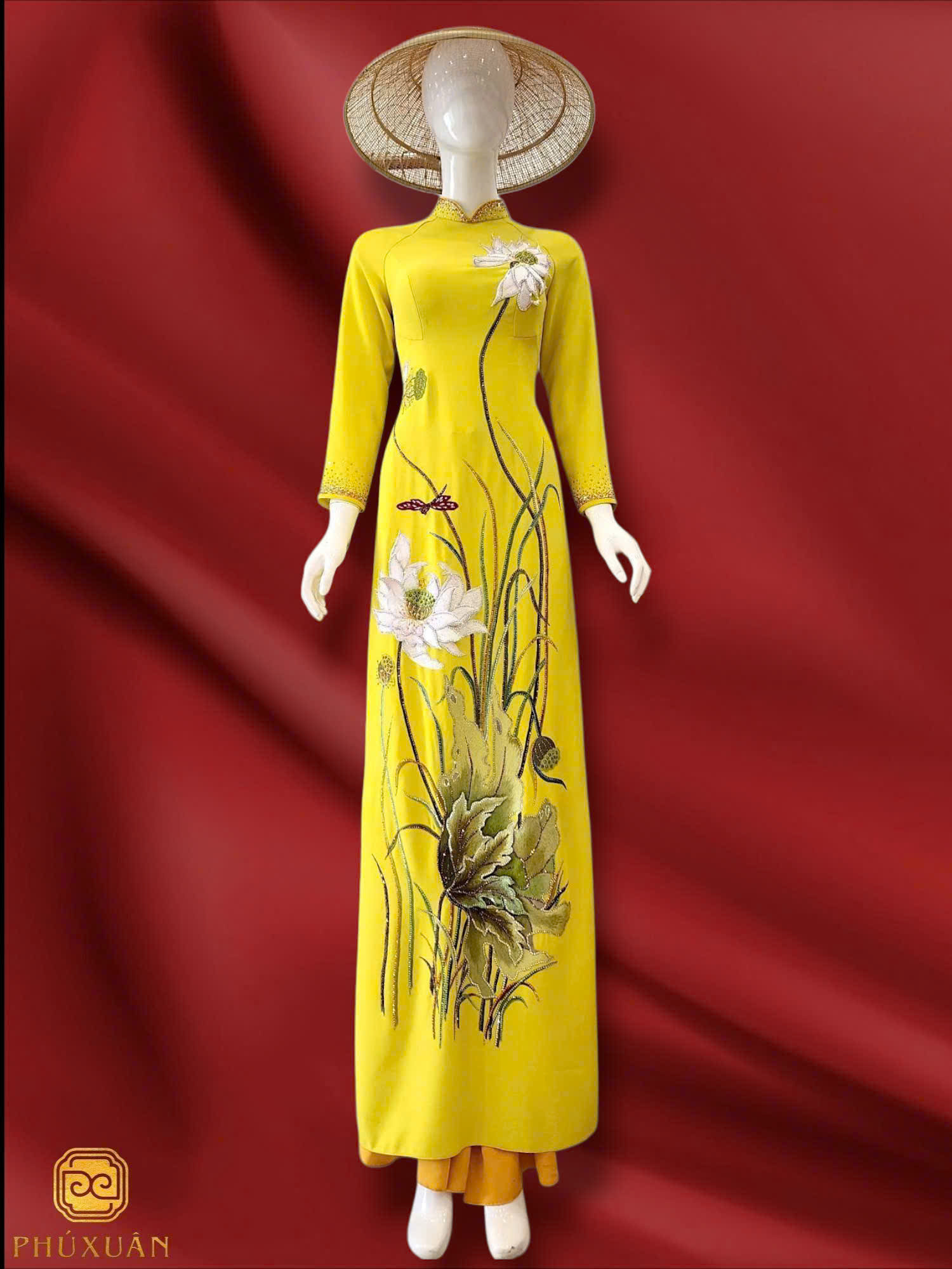 Màu vàng chanh tươi sáng giúp tổng thể trở nên trẻ trung, sang trọng, trong khi hoa sen – biểu tượng của sự thuần khiết và phẩm giá – được thêu bằng kỹ thuật tinh xảo, tạo nên điểm nhấn nghệ thuật đặc biệt. Thiết kế lý tưởng để xuất hiện trong những dịp lễ trọng, trình diễn hoặc sự kiện nơi bạn muốn thể hiện khí chất nổi bật và gu thẩm mỹ khác biệt.