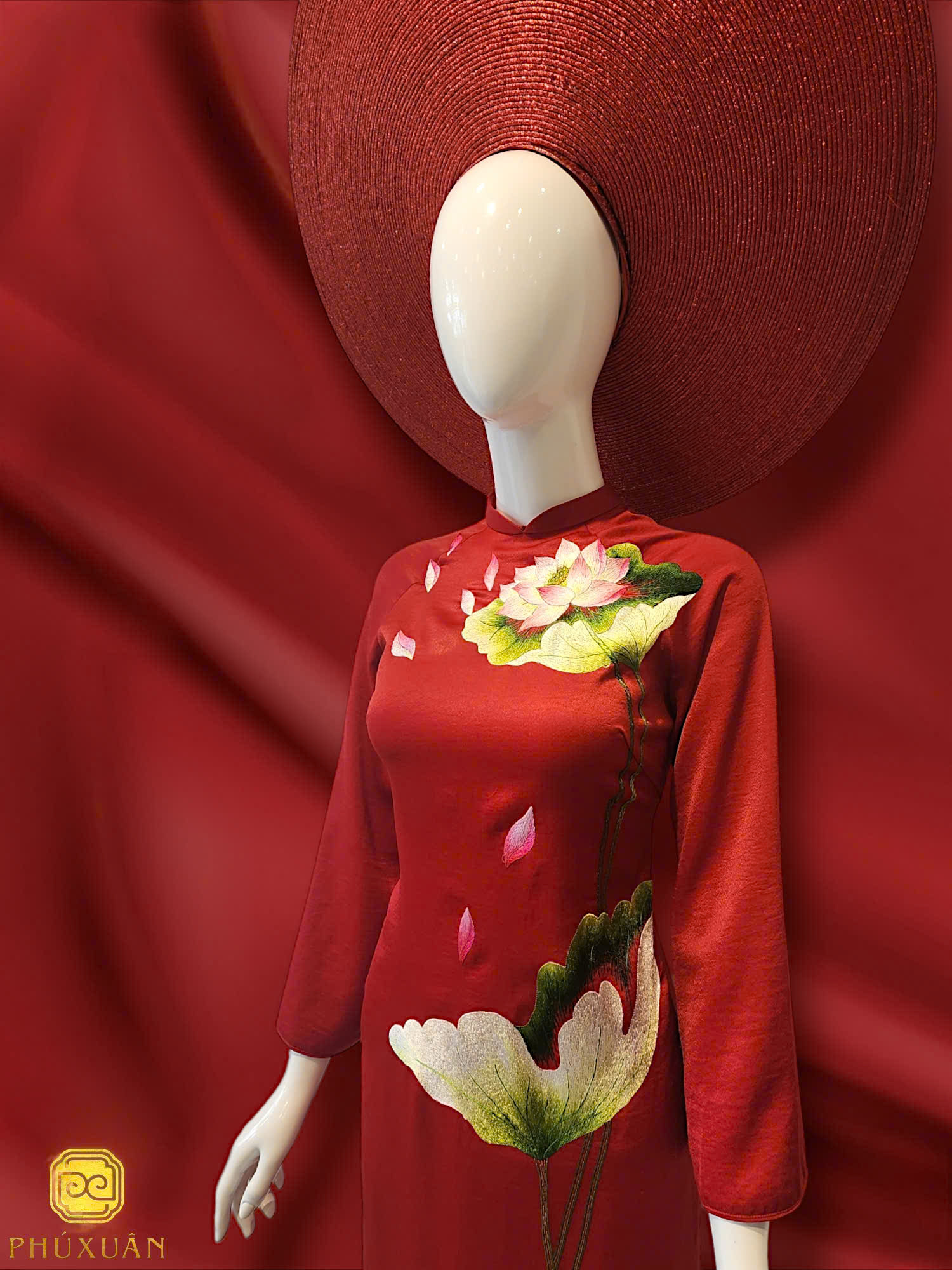 Chiếc áo dài nổi bật với họa tiết hoa sen thêu tay – biểu tượng của sự thuần khiết và thanh cao – tôn vinh vẻ đẹp nền nã và đậm đà bản sắc Việt.
