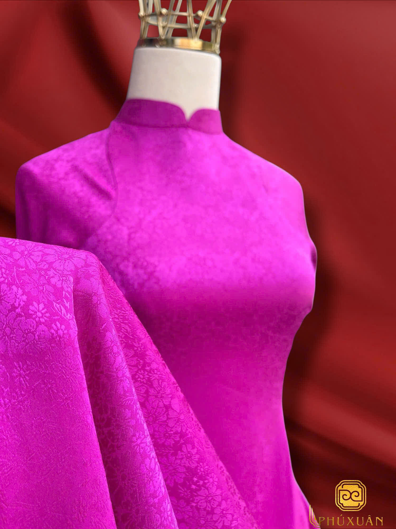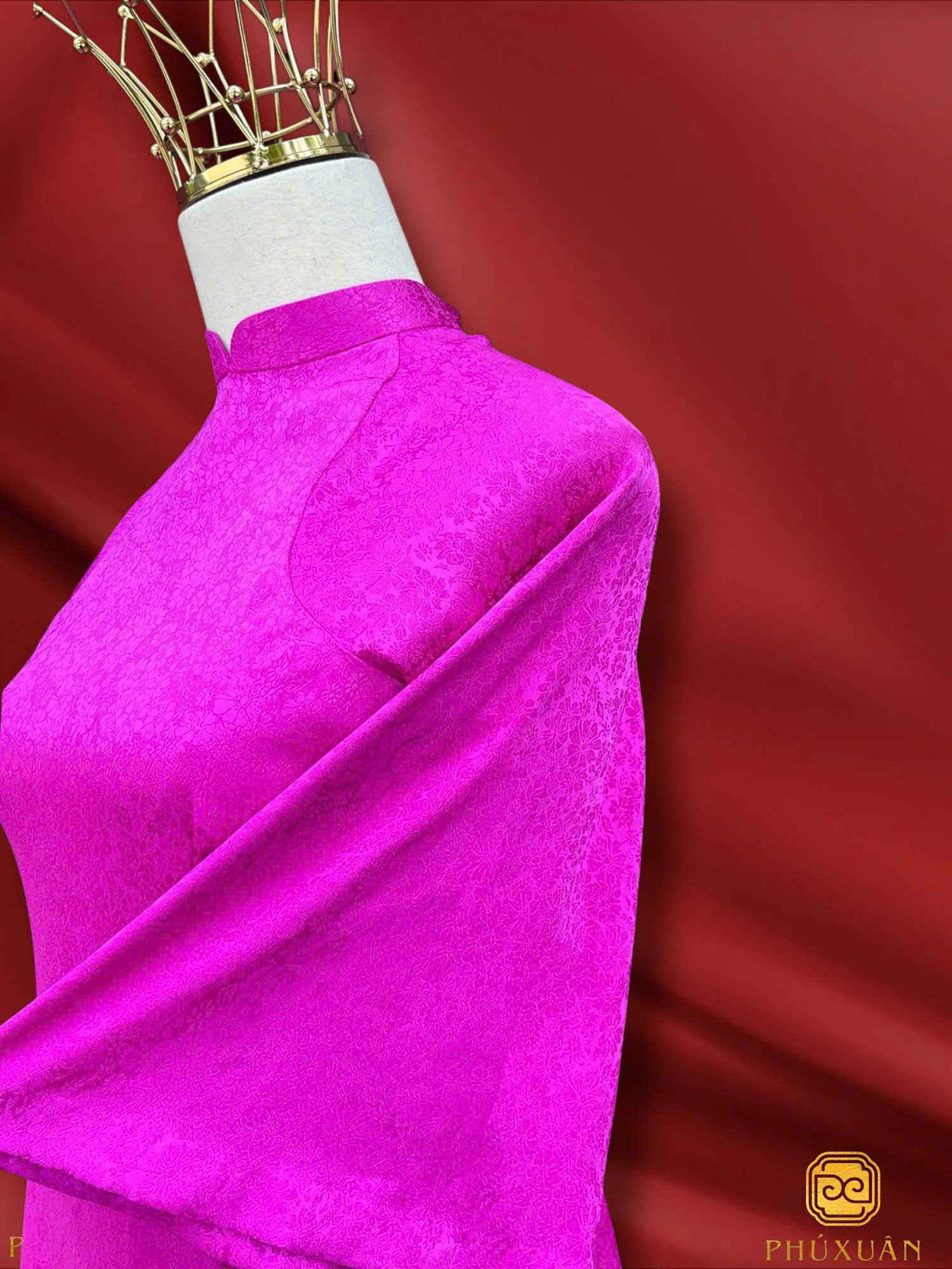 Tựa như mùa xuân ghé đến, chiếc áo dài lụa tằm với họa tiết hoa mai dệt chìm trên nền vải mang đến vẻ đẹp dịu dàng mà rực rỡ. Hoa mai – biểu tượng của may mắn và khởi đầu mới – được dệt ẩn hiện, tạo chiều sâu thị giác mà vẫn giữ nét thanh thoát vốn có của chất lụa tằm. Từng chuyển động của tà áo như đánh thức hơi thở mùa xuân, gợi cảm giác nhẹ nhàng, thanh thoát và đầy nữ tính.