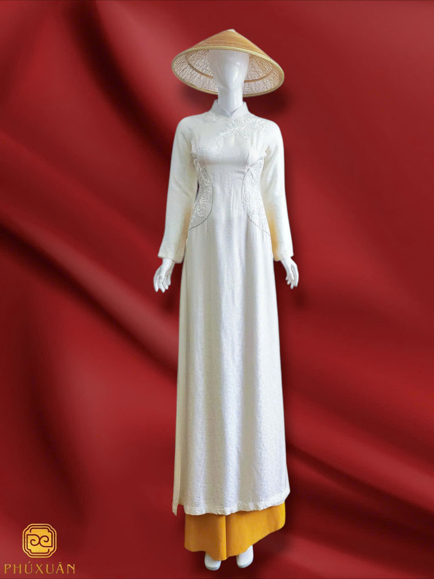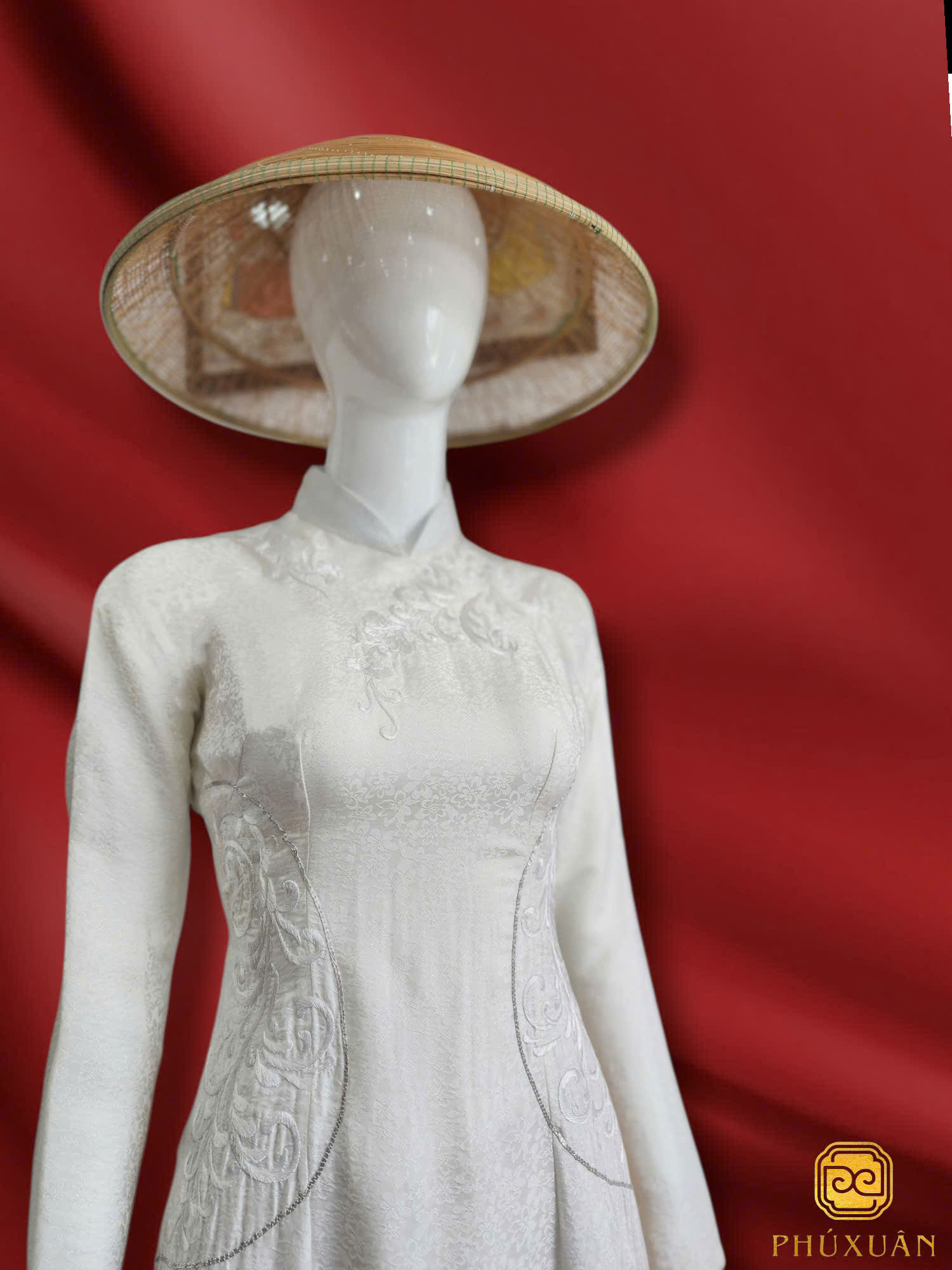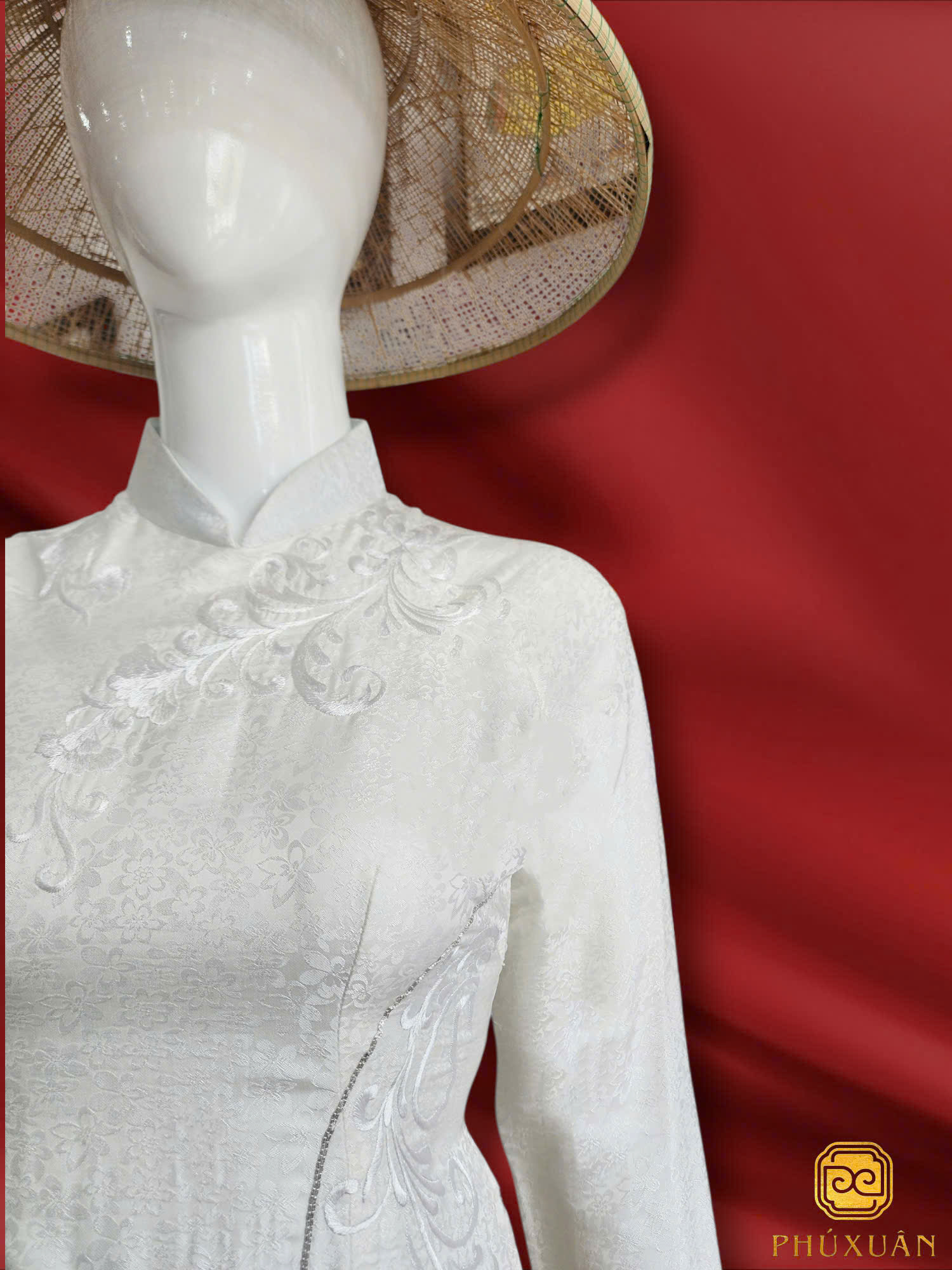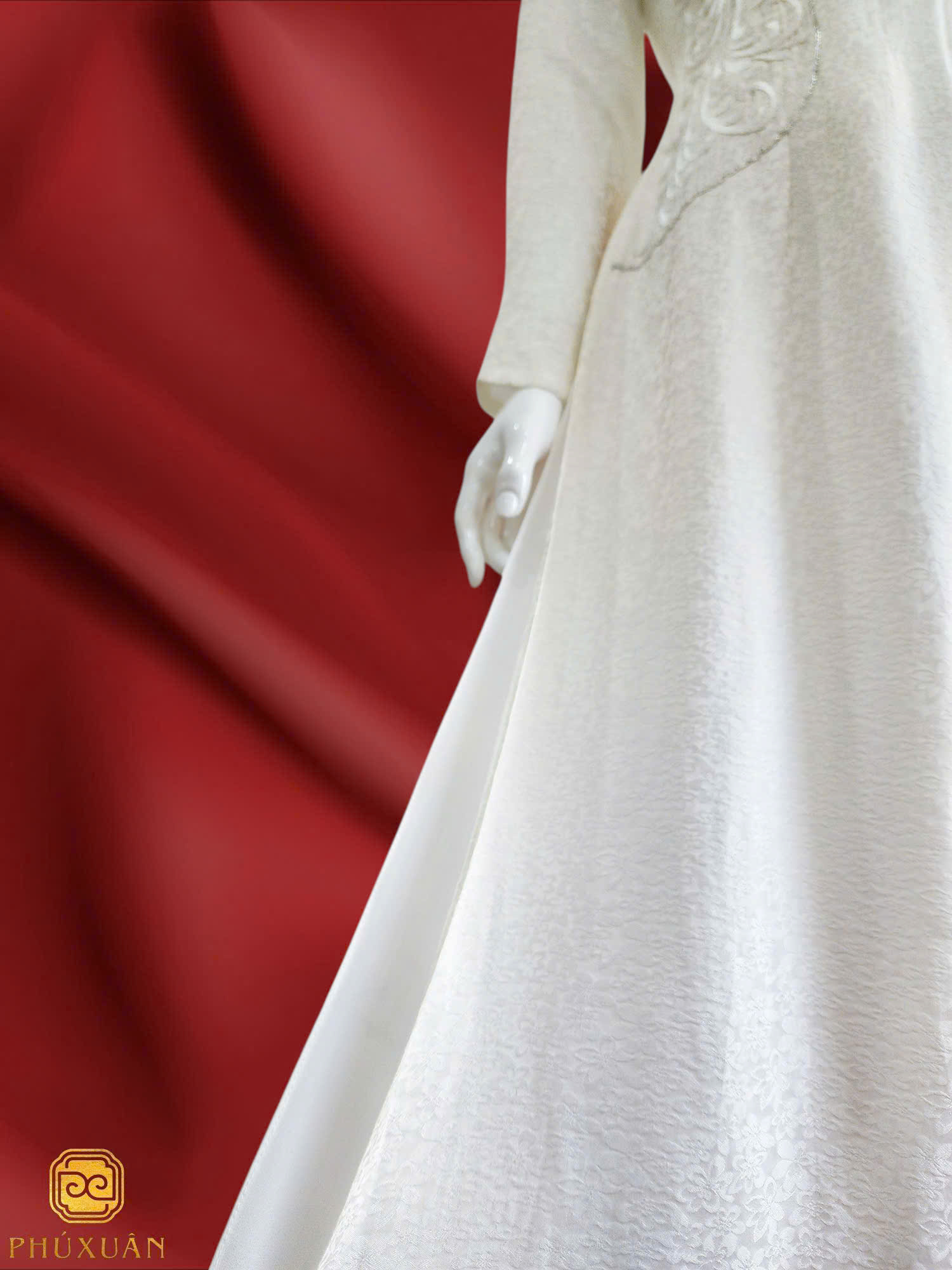 Áo dài trắng với họa tiết hoa trắng thêu tay tôn vinh vẻ đẹp tinh khôi, thanh lịch và đầy tinh tế. Sự đồng điệu giữa màu sắc và họa tiết giúp thiết kế trở nên hài hòa, nhẹ nhàng nhưng vẫn nổi bật. Đây là lựa chọn lý tưởng cho các dịp lễ trang trọng hoặc những khoảnh khắc bạn muốn ghi dấu nét duyên dáng riêng.
