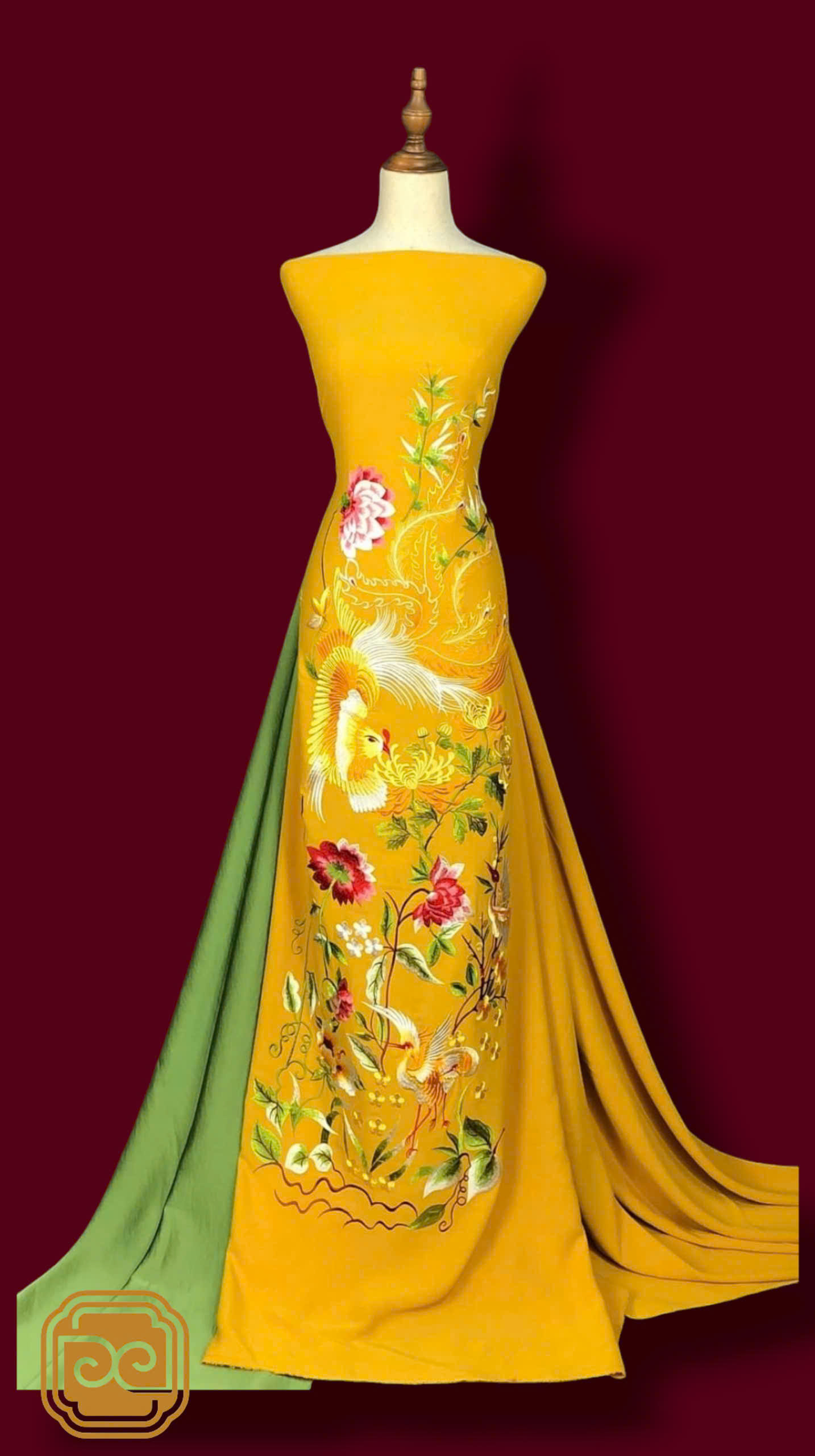 VẢI LỤA THÊU HỒNG PHƯỢNG